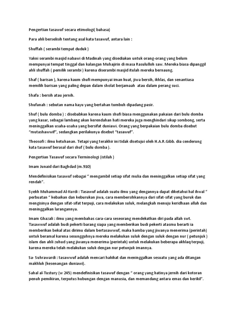 Pengertian Tasawuf Secara Etimologi Dan Terminolog1 Pdf